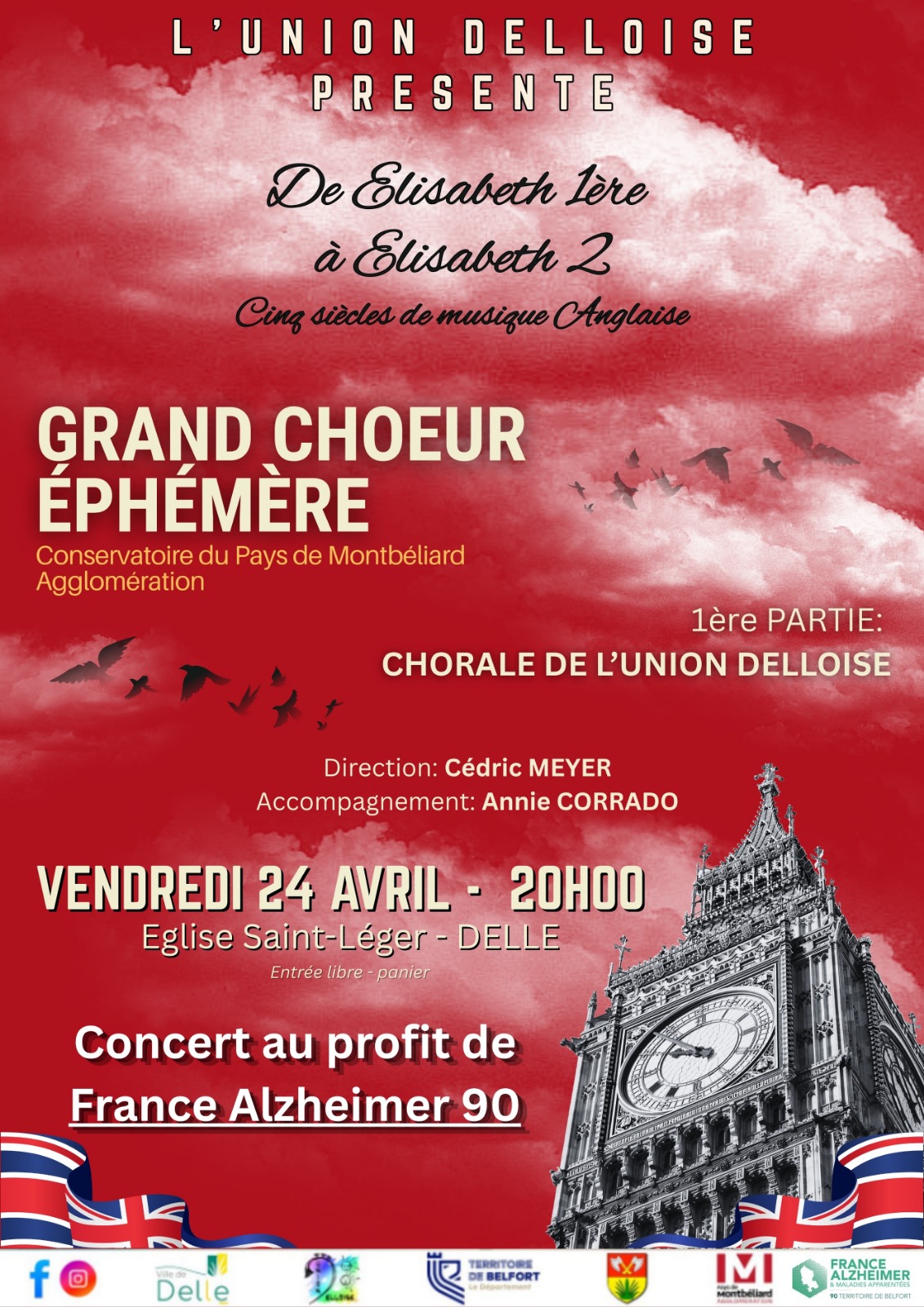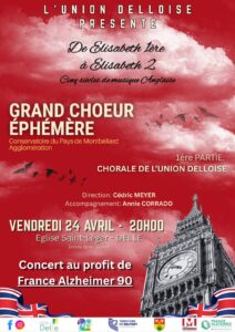 Un concert au profit de France Alzheimer 90 sera donné par le Grand Chœur Éphémère du Conservatoire du Pays de Montbéliard qui va réinterpréter le concert de chants anglais intitulé « d’Elizabeth I à Elizabeth II »